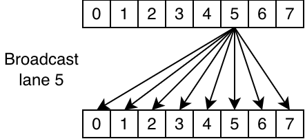 • broadcast31: broadcast the last lane of the first half to the entire second half