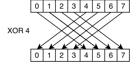 • __shfl_xor(data, 4, 8): XOR the lane index with 4 to get the source lane